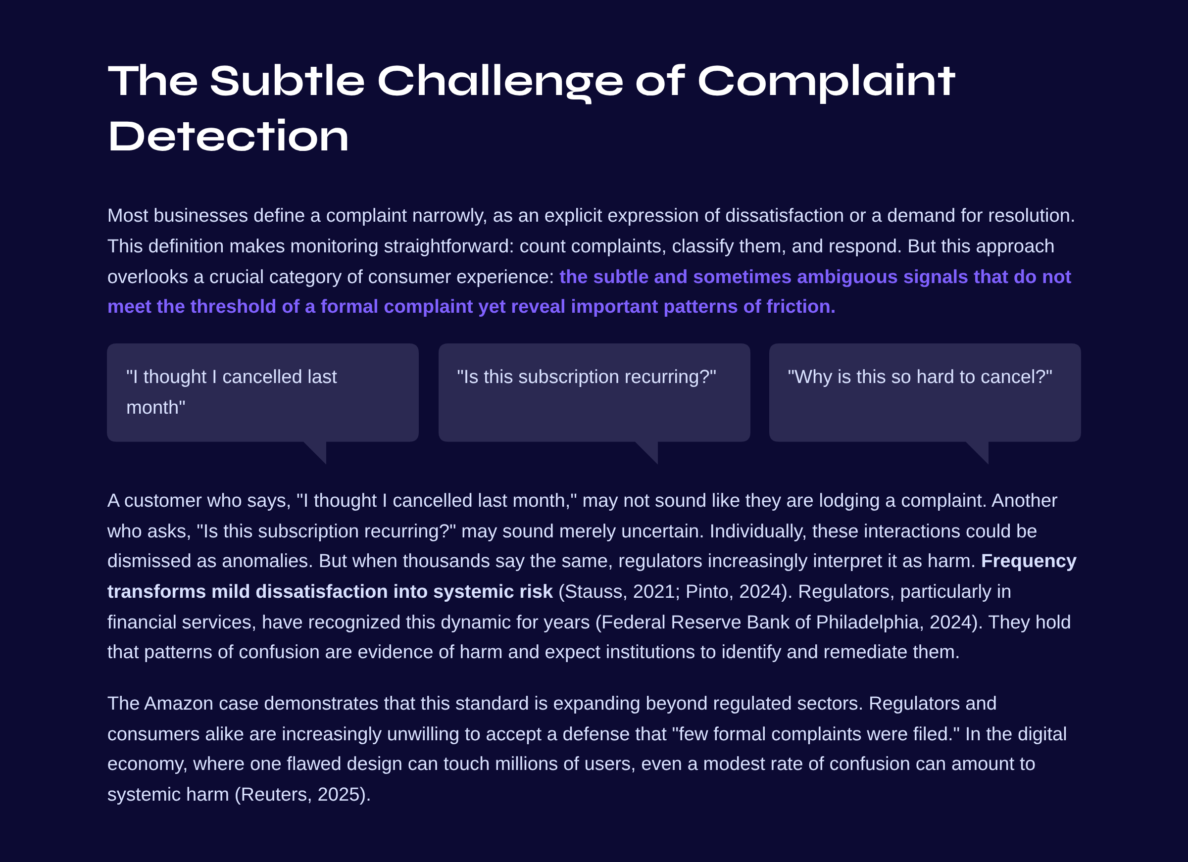 Getting Fined for UX Design: Why Amazon's $2.5B Prime Settlement Proves Businesses Need Automated Complaint Detection